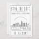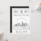 Una invitación única de "save the date" para una boda que tendrá lugar en la hermosa ciudad de Columbus, Ohio. Esta invitación presenta una ilustración estilizada de la silueta única de la ciudad con su nombre debajo. A esto le sigue la información de su día de boda en un estilo abierto y lineal coincidente. En el reverso de la invitación hay un color gris oscuro para complementar la apariencia y el tacto. Todos los elementos individuales de la tarjeta de invitación están desbloqueados, así que siéntase libre de cambiar cualquier detalle necesario, como tamaños de fuente, estilos y más, utilizando la función de personalización. Puede agregar una foto al reverso y aplicarle un filtro en blanco y negro.