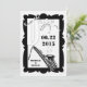 Asegúrate de que tus amigos y seres queridos estén allí para tu boda con estas tarjetas de Salva la Fecha de estilo retro Jazz en negro y blanco. Las tarjetas están en el estilo de un cartel retro, y presentan un saxofón con notas musicales, dos copas brindando, y la frase caprichosa "baila come bebe celebra / vive ama ríe canta" para agregar un toque decorativo.
