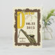 Asegúrate de que tus amigos y seres queridos estén allí para tu boda con estas tarjetas de "Save the Date" de estilo vintage de jazz. Las tarjetas están en el estilo de un cartel retro, y cuentan con un saxofón con notas musicales, dos copas brindando, y la frase caprichosa "baila come bebe celebra / vive ama ríe canta" para añadir un toque decorativo. Las tarjetas tienen un fondo neutro y cuentan con una paleta de colores marrón y dorado otoñal de estilo vintage.