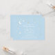 Suave y soñadora, esta bella invitación tiene una luna creciente y una salpicadura de delgadas estrellas doradas y blancas sobre un fondo azul bebé. Haga clic en el personalizar para cambiar el estilo de fuente y el color.