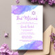 — Colección #LC — Invitaciones a Bat Mitzvah judías, de 12 años, únicas y modernas acuarelas. Bonito diseño con colores violeta, violeta y azul claro con la estrella de David. Tarjetas de plantilla - fácil de agregar el texto. La parte posterior de la tarjeta tiene el nombre completo chica/hija.