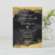 Esta elegante invitación a Bat Mitzvah presenta un fondo negro con una acuarela de color oro falso o tinta de alcohol enmarcando la parte superior e inferior. El diseño muestra una mezcla de tipografía de guiones y tipos de letra serif clásicos, creando un aspecto sencillo pero sofisticado. En el centro, una Estrella de David añade un toque significativo a la invitación. La invitación incluye información sobre el chica Bat Mitzvah, la ubicación del templo, el almuerzo o la ubicación del fiesta, y los nombres de los padres. Los tipos de letra blancos ofrecen un contraste sorprendente con el fondo negro, realzando el elegante tema negro y dorado. Puede personalizar de los colores del tipo de letra y del color de la estrella de David para que coincida con su tema específico. Incluso puede cambiar el color "Relieve metalizado" utilizando los filtros Zazzle (asegúrese de cambiar todas las 'capas' de arte de la herramienta de diseño). Esta invitación es perfecta para celebrar este hito especial con estilo y gracia. Disponible en forma de invitación impresa, o como una invitación digital descargable que puede enviar por correo electrónico o que ha impreso localmente.