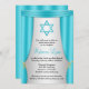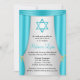 Elegantes invitaciones de Bat Mitzvah con tema de Hollywood. Con cortinas azules verde azuladas y una estrella acuática de David. ¡Perfecto para tu fiesta Bat Mitzvah con temática de Hollywood!