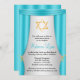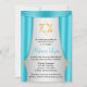Elegantes invitaciones de Bat Mitzvah con tema de Hollywood. Con cortinas azules verde azuladas y una Estrella de David dorada. ¡Perfecto para tu fiesta Bat Mitzvah con temática de Hollywood!