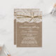 Estas invitaciones rústicas de fiesta de soltera con forma de estrella de mar serán el anuncio perfecto para cualquier novia. El diseño presenta un hermoso efecto de arpillera rústica con un borde de encaje blanco vintage romántico terminado con una impresionante estrella de mar y cuerda.