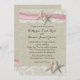 Estrella de mar y cinta rosa y encaje, invitación de boda de destino de playa vintage para tu boda junto al mar.