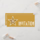 Diseño moderno con una estrella dorada y blanca "brillante" sobre un fondo amarillo oscuro. Invitación con un diseño personalizable para que la personalices con tu propio texto, imágenes e ideas. Ten en cuenta que esta es una imagen impresa creada con fotografías originales y técnicas digitales, no brilla ni contiene destellos reales.