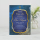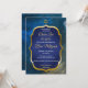 Edite el texto para personalizar esta elegante invitación del Bar Mitzvah de su hijo. Nuestros jóvenes artistas gráficos judíos crearon esta invitación. El Magen David (Estrella de David) y el marco dorado flotan sobre un fondo azul real con efectos de piedra de pizarra. En esta fabricación de esta tarjeta no se utiliza ningún Relieve metalizado de oro real. La impresión en color es de alta calidad y muy vívida. ¡Mazal Tov!
