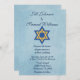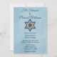 Una elegante invitación a la boda, este diseño presenta un fondo azul con la Estrella de David en azul y dorado. Encima de la estrella de David está el nombre de la pareja, debajo está la información de la ceremonia. ¡Haga su pedido hoy mismo!