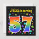 Este divertido, vibrante y emocionante diseño de la fiesta de cumpleaños presenta un patrón de formas de estrellas coloridas, junto con el número "57" que presenta un espectro multicolor inspirado en el arcoiris o un patrón de gradiente. El nombre en la parte delantera se puede personalizar. En la parte posterior se incluyen detalles personalizados sobre el fiesta. Se podrían enviar invitaciones de fiesta de cumpleaños como esta para invitar a los invitados a una fiesta de cumpleaños que se lleva a cabo para celebrar los cincuenta y siete años de alguien. [~Z0000349]