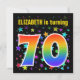 Este divertido, emocionante y vibrante diseño de la fiesta de cumpleaños presenta un colorido patrón de estrellas, junto con el número "70" que tiene un arcoiris multicolor como el espectro o el patrón de gradiente. El nombre en la parte delantera se puede personalizar. En la parte posterior se incluyen detalles personalizados sobre el fiesta. Las invitaciones para fiestas de cumpleaños como esta podrían enviarse a potenciales invitados para una fiesta de cumpleaños que se celebra para celebrar el septuagésimo cumpleaños de alguien. [~Z0000349]