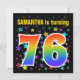 Este emocionante, divertido y vibrante diseño de la fiesta de cumpleaños presenta un colorido patrón de estrellas, junto con el número "76" que tiene un espectro multicolor inspirado en el arcoiris o un patrón de gradiente. El nombre del frente puede ser personalizado. En la parte posterior se ofrecen detalles personalizados sobre el fiesta. Las invitaciones para fiestas de cumpleaños como esta podrían enviarse a potenciales asistentes para una fiesta de cumpleaños que se lleva a cabo para celebrar el cumpleaños setenta y seis de alguien. [~Z0000349]