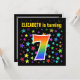 Este divertido, emocionante y vibrante diseño de la fiesta de cumpleaños presenta un patrón de estrellas colorido, junto con el número "7" que tiene un arcoiris multicolor como el espectro o el patrón de gradiente. El nombre del frente puede ser personalizado. En la parte posterior se ofrecen detalles personalizados sobre el fiesta. Las invitaciones a la fiesta de cumpleaños como esta podrían enviarse a potenciales asistentes para una fiesta de cumpleaños que se lleva a cabo para celebrar el séptimo cumpleaños de alguien. [~Z0000349]