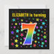 Invitación Estrellas coloridas + Patrón Arcoiris "7" Cumpleañ