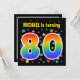 Este divertido, vibrante y emocionante diseño de la fiesta de cumpleaños presenta un patrón inspirado en las estrellas coloridas, junto con el número "80" que tiene un espectro multicolor inspirado en el arcoiris o un patrón de gradiente. El nombre en la parte delantera se puede personalizar. En la parte posterior se incluyen detalles personalizados sobre el fiesta. Las invitaciones para fiestas de cumpleaños como esta podrían ser usadas para invitar a los invitados a una fiesta de cumpleaños que se lleva a cabo para celebrar el ochenta cumpleaños de alguien. [~Z0000349]