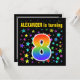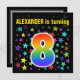 Este divertido, emocionante y vibrante diseño de la fiesta de cumpleaños presenta un colorido patrón de estrellas, junto con el número "8" que presenta un espectro multicolor inspirado en el arcoiris o un patrón de gradiente. El nombre en la parte delantera se puede personalizar. En la parte posterior se incluyen detalles personalizados sobre el fiesta. Las invitaciones para fiestas de cumpleaños como esta podrían enviarse a potenciales invitados para una fiesta de cumpleaños que se lleva a cabo para celebrar el octavo cumpleaños de alguien. [~Z0000349]