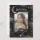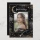 ¿Estás soñando con una celebración que está fuera de este mundo para coincidir con tu estilo y personalidad únicos para tu 15 cumpleaños? Fija el tono perfecto con estas invitaciones celestes de Quinceañera. Estas no son solamente tarjetas de fotos ordinarias - son románticas, soñadoras y llenas de profundidad, asegurando que todos los que reciben una esperan ansiosamente su mágica celebración. La invitación en sí es un vistazo a tu mundo mágico, una historia que espera ser contada. Desde el momento en que lo sostienen, su foto brilla en el corazón, rodeada por el lustre dorado de una luna, el barrido de una estrella fugaz, constelaciones que tejen sueños y galaxias que giran en asombro interminable. Los planetas se deslizan a lo lejos, capturando la esencia de tu imaginación ilimitada. Tanto si eres una espectadora perdida en la belleza del cielo nocturno, un amante de los misterios de la astrología, como simplemente encantada por los secretos del universo, esta invitación refleja cada parte de quien eres a los 15. Acepta la emoción, la maravilla, la belleza de tu propia historia - este es tu momento, tu viaje, tus estrellas alineándose!