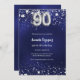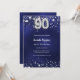Invitación Estrellas de plata azul marino lujo de 90 años