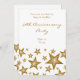 Diseño moderno con estrellas doradas y blancas "brillantes y relucientes" sobre un fondo blanco. Invitación con un diseño personalizable para que la personalices con tu propio texto, imágenes e ideas. Ten en cuenta que esta es una imagen impresa creada utilizando fotografías originales y técnicas digitales, no brilla ni contiene purpurina real.