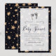Invitación Estrellas Doradas Azul Marino Tendencia Estelar Baby Shower. Hermosas estrellas doradas en un diseño de patrón de galaxia espacial astronomía de fondo azul marino oscuro.