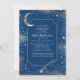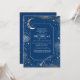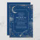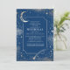 La invitación azul marino presenta un diseño apacible y celeste, adornado con galaxias distantes, planetas majestuosos, una elegante estrella fugaz y una delicada luna creciente. Esta plantilla está diseñada para honrar a un ser querido que siempre aspiraba a tocar los cielos, le gustaba mirar fijamente, y encontró inspiración y alegría bajo las maravillas de un cielo lleno de estrellas.
