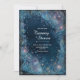 This design plunges your guests into an effervescent cosmic sea of deep indigo and shimmering teal. Floating stardust bubbles and radiant glowing nebulae create a sense of rhythmic movement across the dark sky, while a minimalist gold double-line border provides a sophisticated frame for your event details. The high-contrast palette of cool blues and warm golden sparks captures the mystery of a midnight sky, reflecting the detailed aesthetic often found in your digital product catalog. As a wedding invitation, this piece is a breathtaking choice for a formal evening celebration or a romantic ceremony under the stars. It provides a majestic and unique way to announce your union, blending modern artistic texture with timeless cosmic elegance. This ethereal and detailed aesthetic is a beautiful fit for high-end social gatherings or creative branding projects.