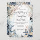 El diseño presenta una disposición suave y etérea de tonos azules en polvo y suaves de tierra con delicados follajes, bayas y flores que rodean los bordes. El marco está decorado con hojas de acuarela, flores de algodón y bayas oscuras, lo que le confiere un ambiente rústico y elegante. El área central se deja en blanco, ideal para los detalles de texto o evento, rodeado de formas orgánicas que evocan un ambiente sereno y otoñal. Este sofisticado motivo inspirado en la naturaleza funcionaría muy bien para una colección boda con un ambiente romántico y atemporal.