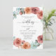 Los huéspedes podrán deleitarse con esta elegante invitación floral acuática. Invitación que rodea los detalles de su boda con exquisitos detalles de flores acuáticas pintadas a mano en una elegante combinación de rosa, marfil, melocotón, azul de pizarra nublada, gris y sabio. Romántico y elegante pizarra/fondo azul polvoriento y turbio. Parte de nuestro boda "Ethereal in Dusty Blue" y colección de eventos.