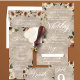 Comience con el corazón de su historia de amor con nuestras invitaciones a bodas de Ethereal Elegance, un testamento de la belleza de su unión. Decorada con nuestra exclusiva paleta de colores "El velo etéreo", "El sabio susurro", "el palisandro", "el pepino de arcilla" y "el avispón rústico", cada invitación es una obra de arte, susurrando historias de amor y compromiso. El delicado diseño, enmarcado por los etéreos bordes de los ramos florales que florecen en la parte superior e inferior, invita a sus huéspedes a presenciar la alegría y la elegancia de su día especial. Diseñadas para aquellos que encuentren belleza en los detalles, nuestras invitaciones para bodas están disponibles en múltiples tipos y tamaños de papel, lo que garantiza una combinación perfecta para su celebración única. Tanto si elige la lujosa textura de la ropa de cama de primera calidad como el sutil brillo de la perla, cada opción realza las cualidades etéreas de la invitación, invitando a sus huéspedes a un mundo de delicado romance y sofisticado encanto. Nuestras tarjetas de Elegancia Eérea, papel, decoraciones y regalos aportan una gracia inigualable a cualquier ceremonia o celebración. La colección contiene mesas, carteles, favores de fiesta, regalos y mucho más. Los clientes estarán encantados en un ambiente de susurros suaves y encantadores que se repiten en cada detalle. Ya sea que estés uniendo dos almas en matrimonio o renovando votos en la danza de la colaboración de toda la vida, la suite boda Ethereal Elegance ofrece todo lo necesario para crear un santuario de amor. Explore la colección Ethereal Elegance y deje que la narrativa de su día de bodas sea contada en tonos que bailan entre las líneas clásicas y contemporáneas, arraigando y grandeza, simplicidad y esplendor. Esta invitación no es solamente un llamado a reunirse; es una invitación a compartir la belleza de un amor que es tan perdurable como la tierra bajo nuestros pies y tan conmovedor como los vientos que susurran.