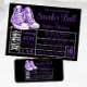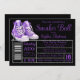 Invitación a la pelota de zapatillas moradas con unas bonitas zapatillas moradas en un fondo negro y plateado. Esta invitación a la pelota morada y negra se personaliza fácilmente para tu evento simplemente añadiendo tus detalles. También puede cambiar el color de fondo y el de texto.