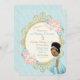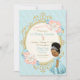 Hermosa Princesa en un cuento de hadas en colores de marfil, rosa y azul acuático. En la parte trasera hay una zapatilla en una almohada y calabaza. Personalice para su ocasión.