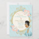 Hermosa Princesa en un cuento de hadas en colores de marfil, rosa y azul acuático. En la parte trasera hay una zapatilla en una almohada y calabaza. Personalice para su ocasión.