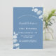 Un fondo azul polvoriento, decorado con tallos de eucaliptos, brotes. Personalice y agregue un nombre y detalles del fiesta.