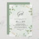 Este confetti eucalipto dorado es una invitación a la ducha de bebé chica, perfecto para una ducha o rociada rústica. El diseño presenta una acuarela de color eucalipto verde con confeti dorado.