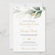 Invitación Eucalipto de verde y oro salpican a boda de boho