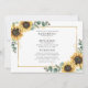 Invitación a la Boda de Girasol con Eucaliptos Geométricos Florales. Crea una moderna tarjeta de invitación a la Boda con Floral de Girasol con esta bonita plantilla con un hermoso ramo rústico floral, marco geométrico con efecto oro, con moderna tipografía simple. CONSEJO: En la colección que aparece a continuación se pueden encontrar tarjetas de suite boda como RSVP, programas de boda, carteles, tapiz, etiquetas de regalo, carteles y otros agujeros y artículos de boda.