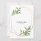 Diseño geométrico en oro con hojas de eucalipto preciosas, flores amarillas y helechos. También hay disponibles RSVP, servilletas de papel y números de mesa para completar su boda de vegetación y temática del jardín.