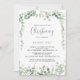 Esta invitación geométrica al bautizo de eucalipto minimalista es perfecta para un bautizo o bautismo moderno. El diseño se caracteriza por sus elegantes ramas y hojas de eucalipto botánico a mano de acuarela, adornando marcos geométricos.
