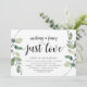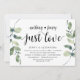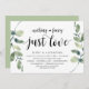 Tarjeta de invitación temática de eucalipto verde rústico moderno, con escritura negra (con título de tarjeta: Nada elegante, solo amor). Es perfecta para su recepción de boda íntima / fiesta de celebración posterior a la boda. Agregue sus detalles en letra / tipografía negra coincidente.