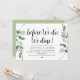 Tarjeta de invitación temática moderna rústica con eucalipto verde, y letra negra (con título de tarjeta: ¡Antes de hacerlo, cenamos!). Es perfecto para la celebración de la cena de ensayo de su boda, antes de su mejor día. Agregue sus detalles en letra negra coincidente.