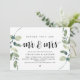 Tarjeta de invitación temática de eucalipto con vegetación rústica moderna, guión negro (con título de tarjeta: Antes de que sean señor y señora). Es perfecto para la celebración de la cena de ensayo de su boda, antes de su mejor día. Agregue sus datos en letra / letra negra coincidente.