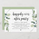 Tarjeta de invitación temática de eucalipto con vegetación rústica moderna, guión negro (con título de tarjeta: fiesta feliz para siempre). Es perfecto para su recepción de boda de fuga de novios / celebración posterior a la boda. Agregue sus detalles en letra / letra negra coincidente.