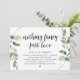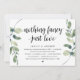 Tarjeta de invitación temática moderna de greenery rústica con eucalipto y guión negro (con título de tarjeta: Nada lujoso, solo amor). Es perfecta para su recepción de boda de fuga de novios / celebración posterior a la boda. Agregue sus detalles en fuente / letra negra a juego.