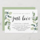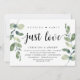 Tarjeta de invitación temática de eucalipto rústico moderno, guión negro (con título de tarjeta: Nada elegante, solo amor). Es perfecta para su recepción de boda de fuga de novios / fiesta de celebración post boda. Agregue sus detalles en fuente / letra negra coincidente.