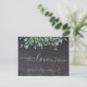 ¡Todo lo que necesitamos es Amor y un oficial! Solicita el servicio de tu oficial para tu boda con estas modernas pero rústicas tarjetas de "¿Nos casarás?" con vegetación de eucalipto sobre pizarra gris, elegantes. Estas solicitudes de oficial con eucalipto presentan hojas de vegetación de eucalipto salvia elegantes, delicada escritura en pizarra gris. Personaliza estas invitaciones para el oficial de tu boda con tu mensaje personal. Estas únicas tarjetas de "¿Nos casarás?" con vegetación harán una impresión duradera, ¡tu sacerdote, pastor o oficial seguramente dirá que Sí! DERECHOS DE AUTOR © 2020 Judy Burrows, Black Dog Art - Todos los derechos reservados. Invitación rústica de eucalipto para oficial de "¿Nos casarás?"