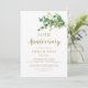 Celebre un hito dorado con esta elegante invitación al aniversario de los 50 bodas del eucalipto, con venas de oro. Este diseño combina la belleza natural con la sofisticación atemporal, con unas hojas de eucaliptos de acuarela exuberantes y acentuadas con una delicada veta dorada. La estética minimalista y refinada marca el tono perfecto para una memorable celebración del aniversario. El personalizable completo para su estilo.