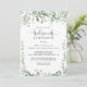 Esta invitación a las damas de honor de eucalipto verde es perfecta para una moderna ducha de boda. El diseño se caracteriza por sus elegantes ramas y hojas de eucalipto botánico a mano de acuarela, adornando marcos geométricos.