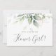 Tarjetas de propuesta de dama de honor con eucalipto en acuarela y hojas doradas.