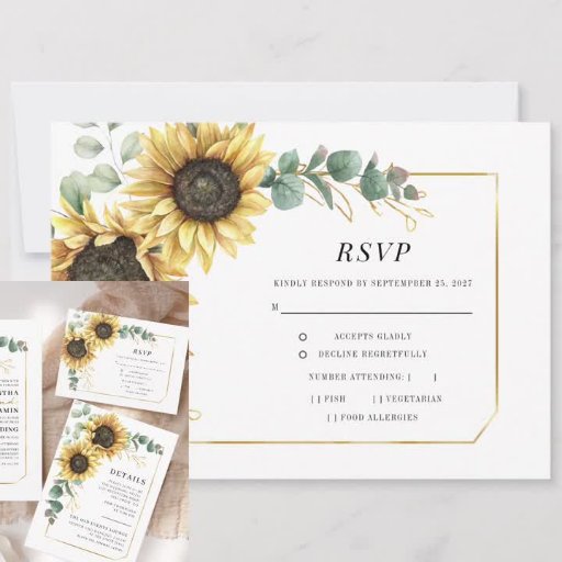 Crea una moderna tarjeta de invitación a la Boda Floral de Girasol con esta bonita plantilla con un bonito ramo rústico floral, marco geométrico de efecto oro, con una moderna y sencilla tipografía. CONSEJO: En la colección que aparece a continuación se pueden encontrar tarjetas de suite boda como RSVP, programas de boda, carteles, tapiz, etiquetas de regalo, carteles y otros agujeros y artículos de boda.