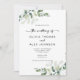 Disfrute del ambiente romántico de su boda con este moderno diseño con hojas de eucalipto acuarelas.